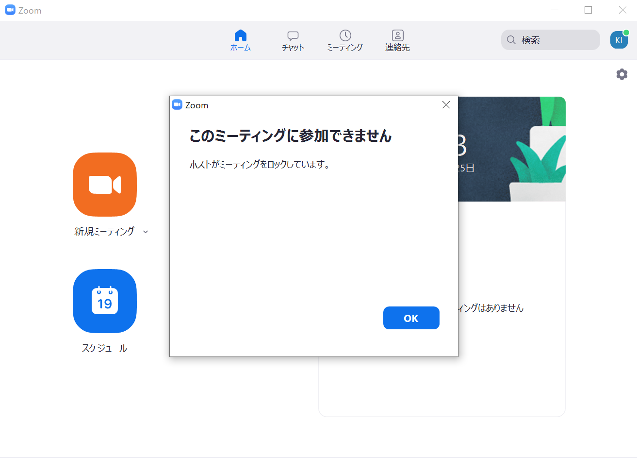 「セキュリティ」から「ミーティングのロック」をクリックするだけで、ロック後にアクセスすることができなくなります。