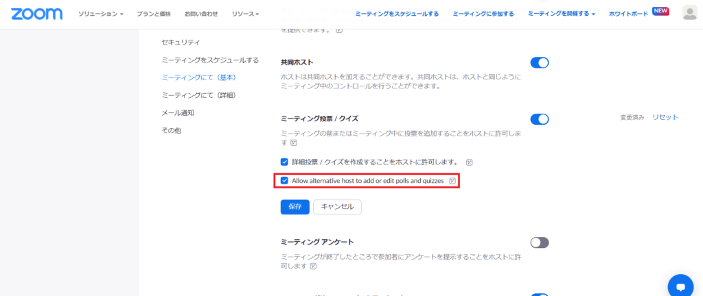 「ミーティングにて(基本)」から「Allow host or co-host to rename participants in the waiting room(ホストまたは共同ホストが控え室で参加者の名前を変更できるようにする)」にチェックを入れます。