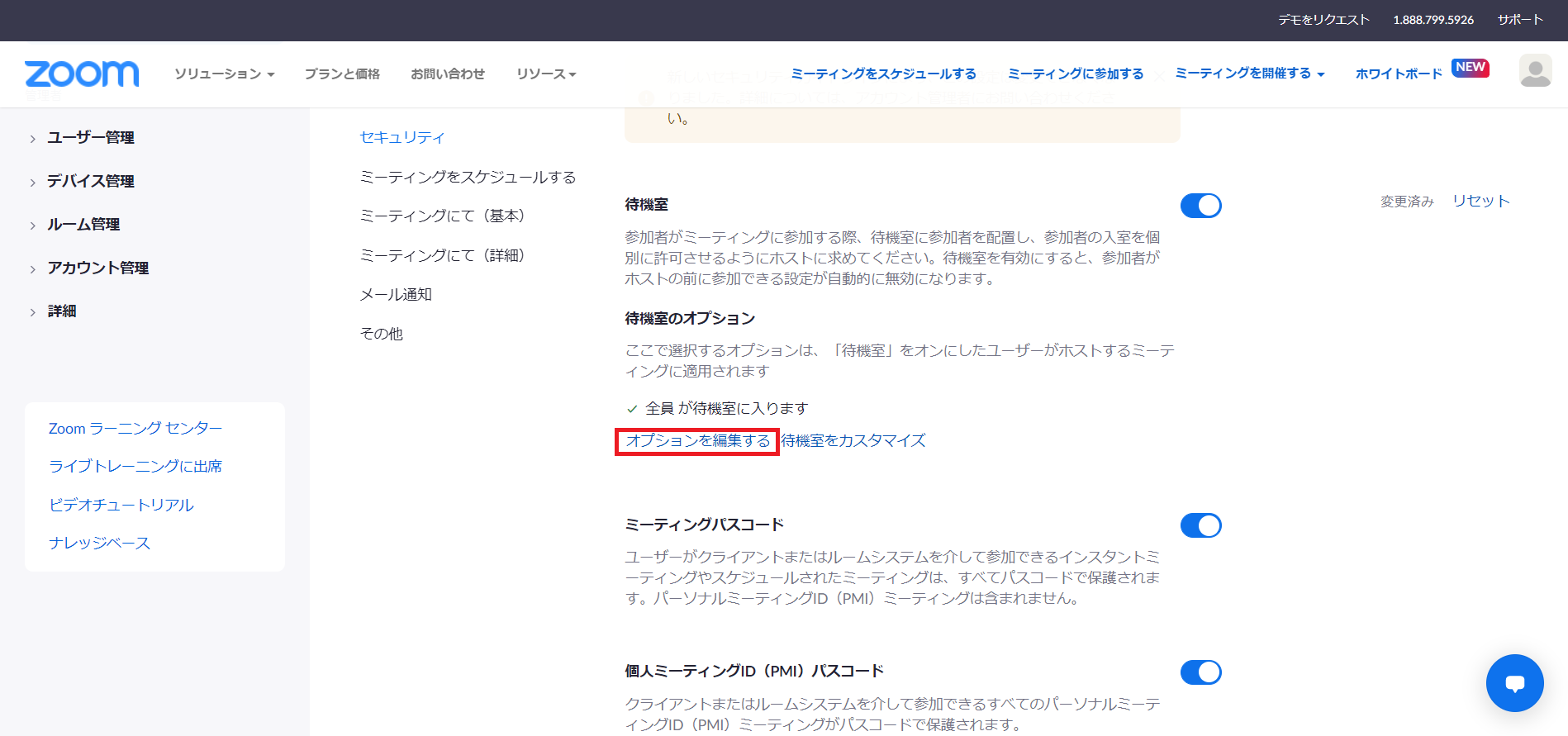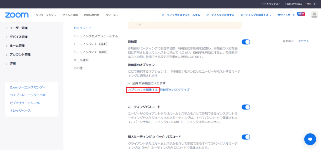 「待機室オプション」にある「オプションを編集する」をクリック。
