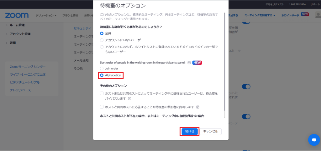 今回は前回に引き続き、4月19日にリリースされた待合室の参加者の順序の拡張について。バージョン5.10.3より、待機室にいる参加者の表示を入室順またはアルファベット順にできるようになりました。