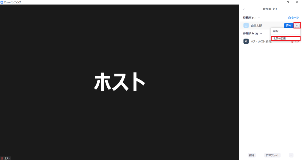 変更するには、待機室にいる参加者の名前横にある「…」をクリックし、名前を変更します。