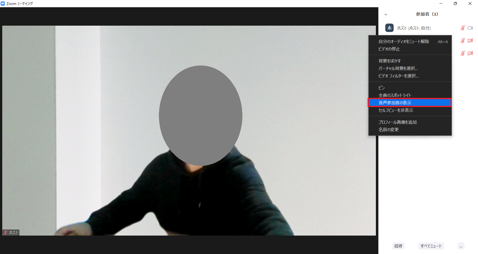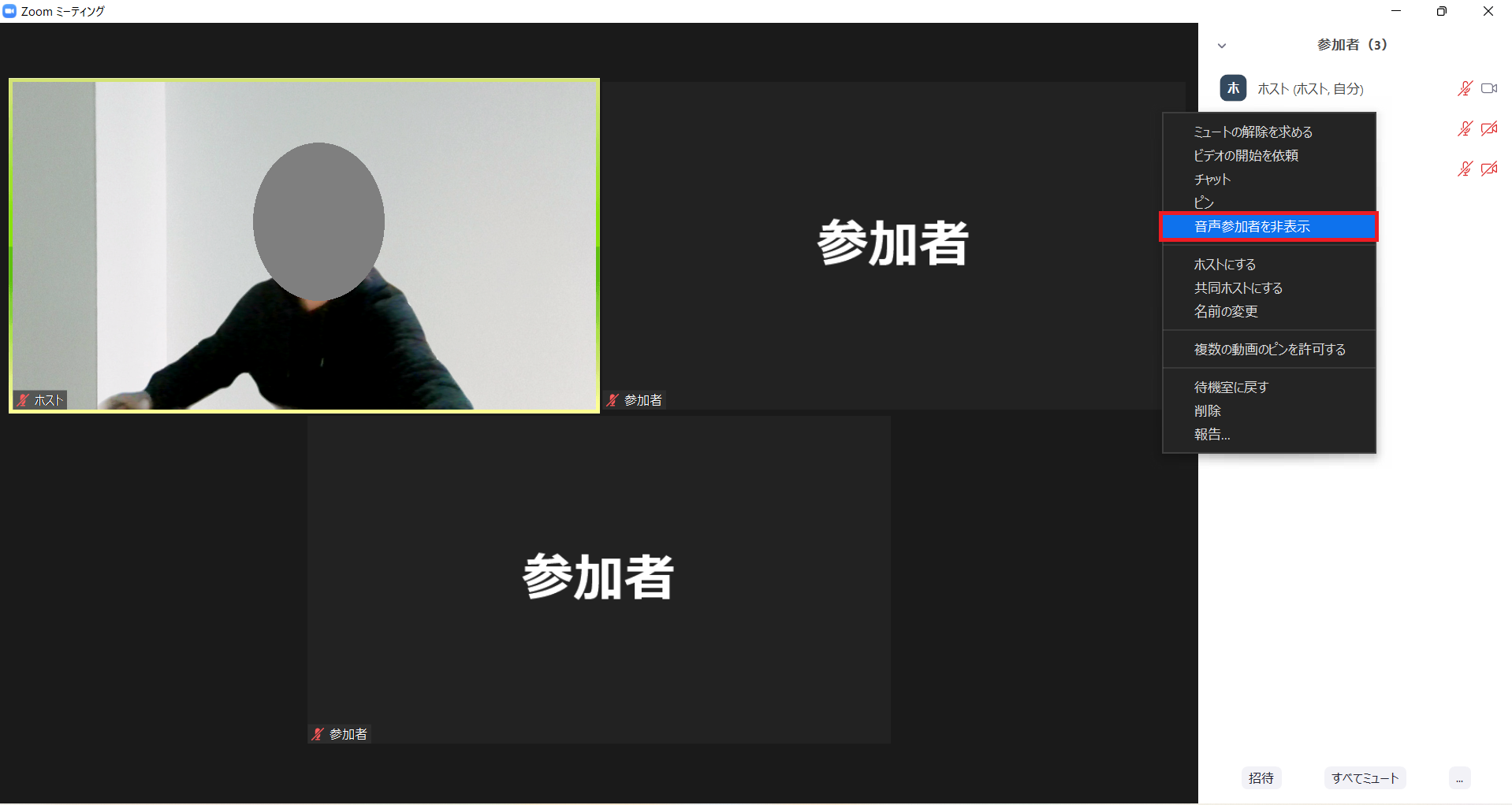 そんなときに使えるのが、「音声参加者を非表示にする」。