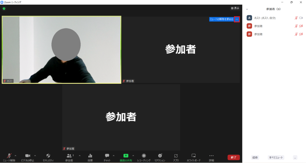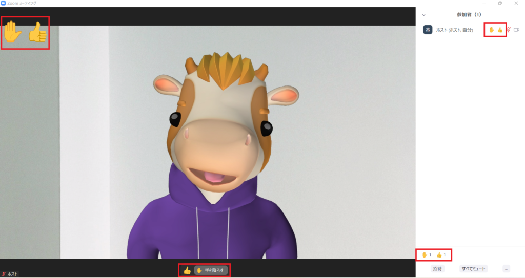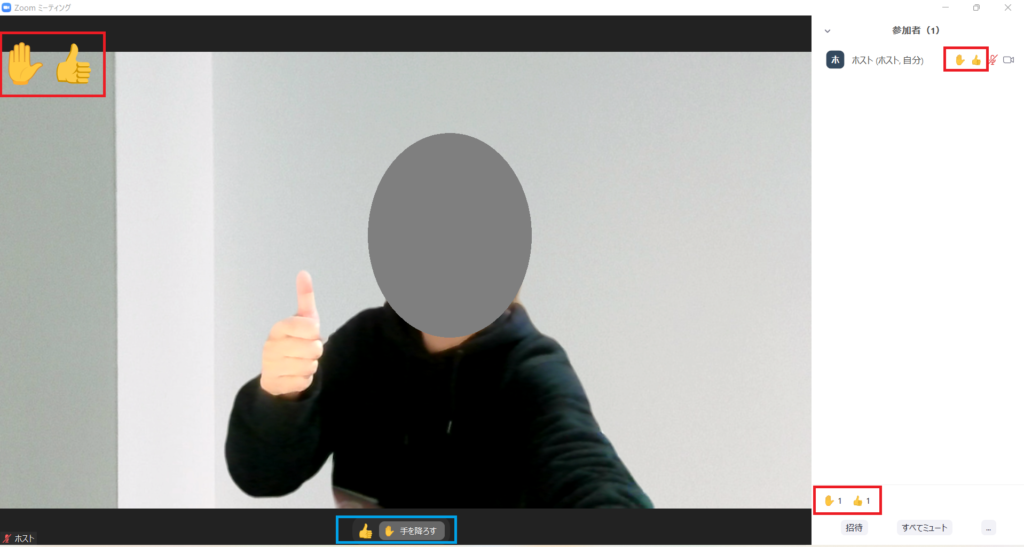 青い部分は自分だけに表示されます。手を降ろす場合は、「手を降ろす」をクリックすると降ろせます。