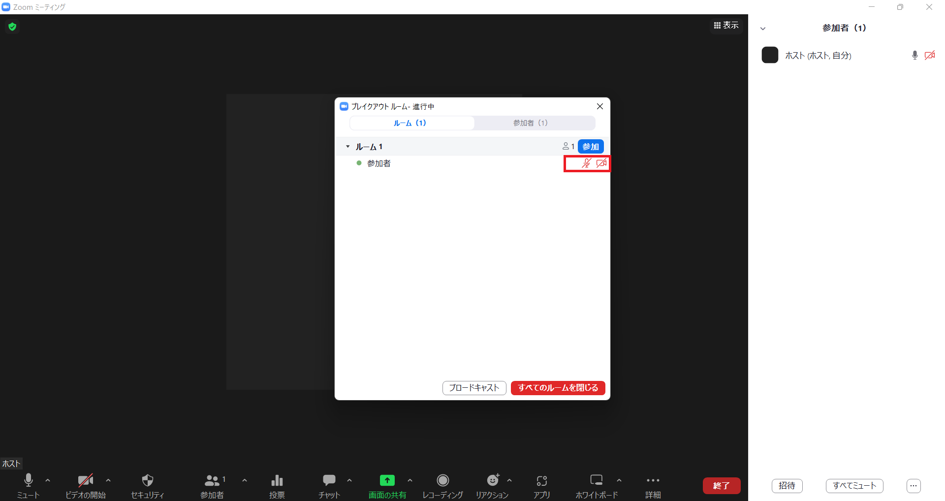 名前の横にマイクとビデオの状況が表示されました。