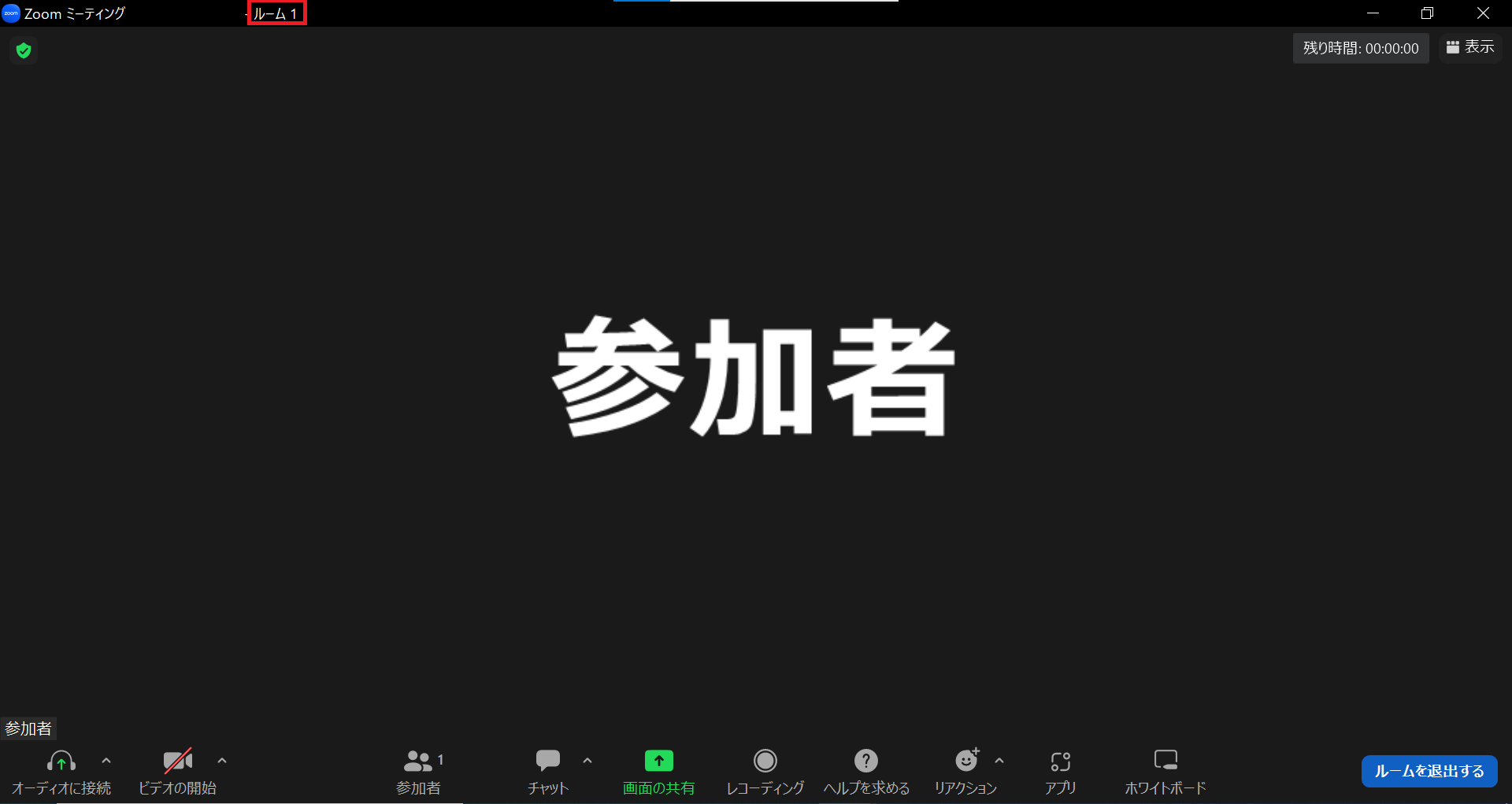 (何の設定もしていない状態で、ブレイクアウトルームに参加した画面。他の参加者がいても、メインルームと見栄えがほとんど変わりません)