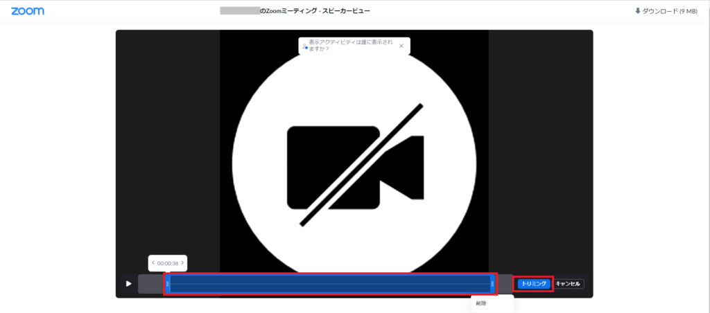 クラウド記録のトリミング