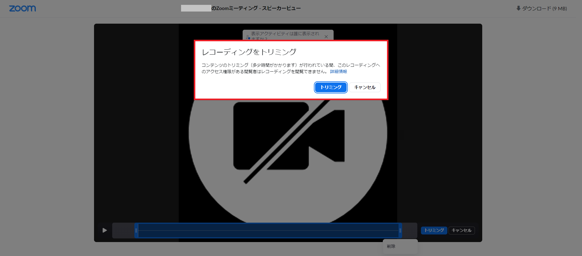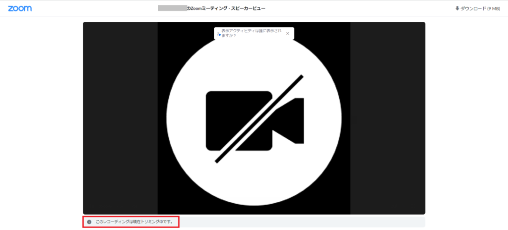 「このレコーディングは現在トリミング中です」の表示がなかなか消えないのですが、ブラウザを更新すると、