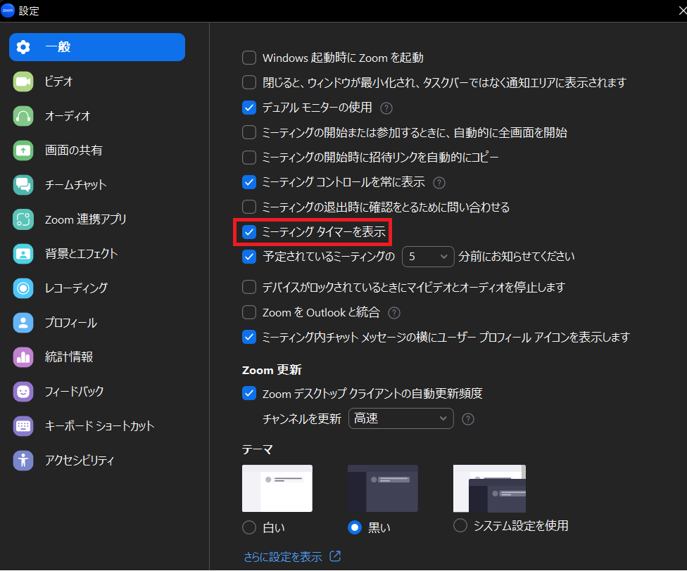 使用する際には、アプリ版にて「ミーティングタイマーを表示」にチェックを入れておく必要があります。