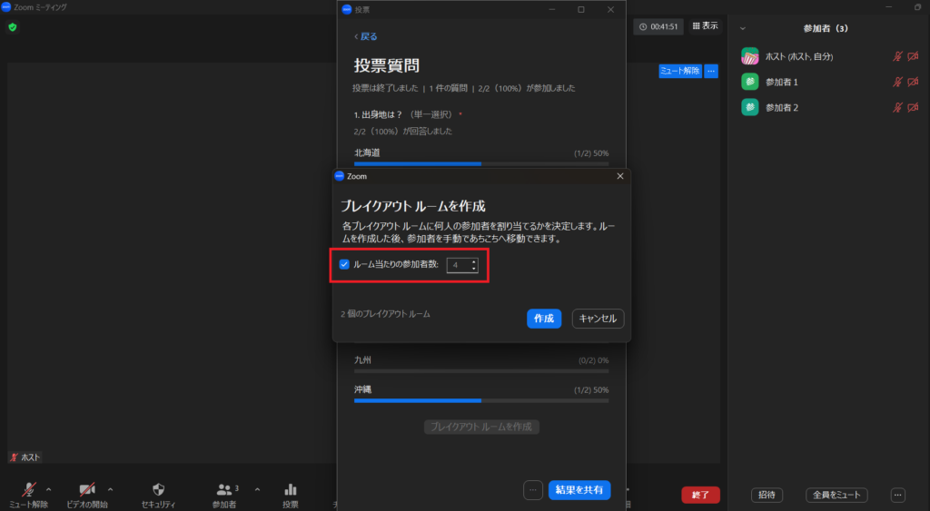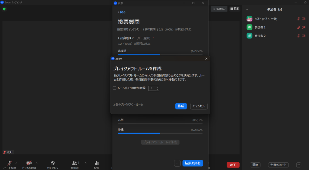 【Zoom運用】新機能試してみた!「投票結果に基づいて小会議室を作成」
