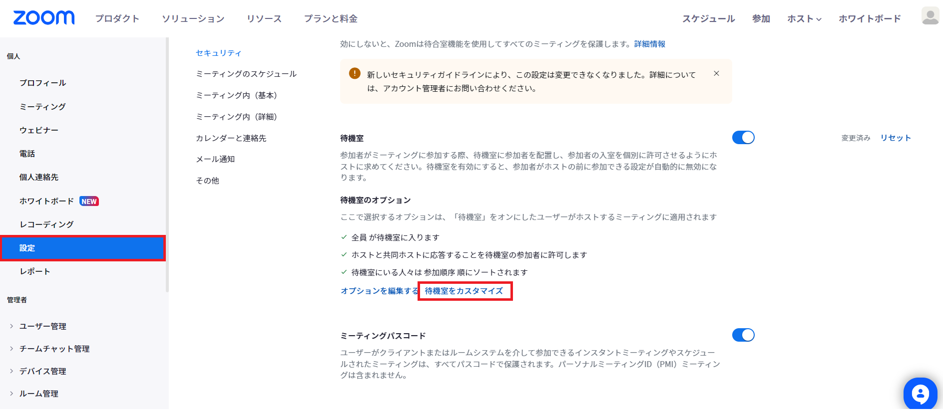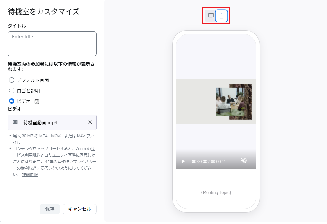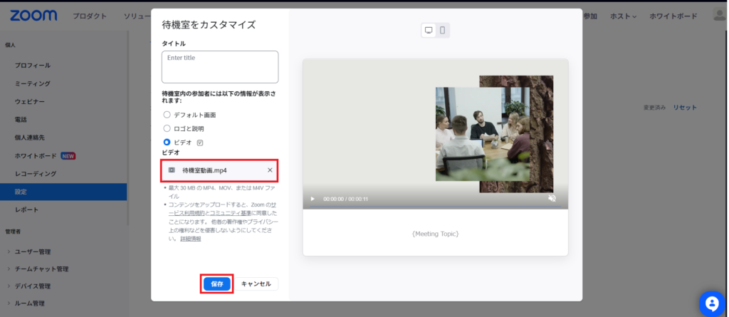 5.設定後のZoomミーティングから、参加者が待機室に入ると動画が配信されます