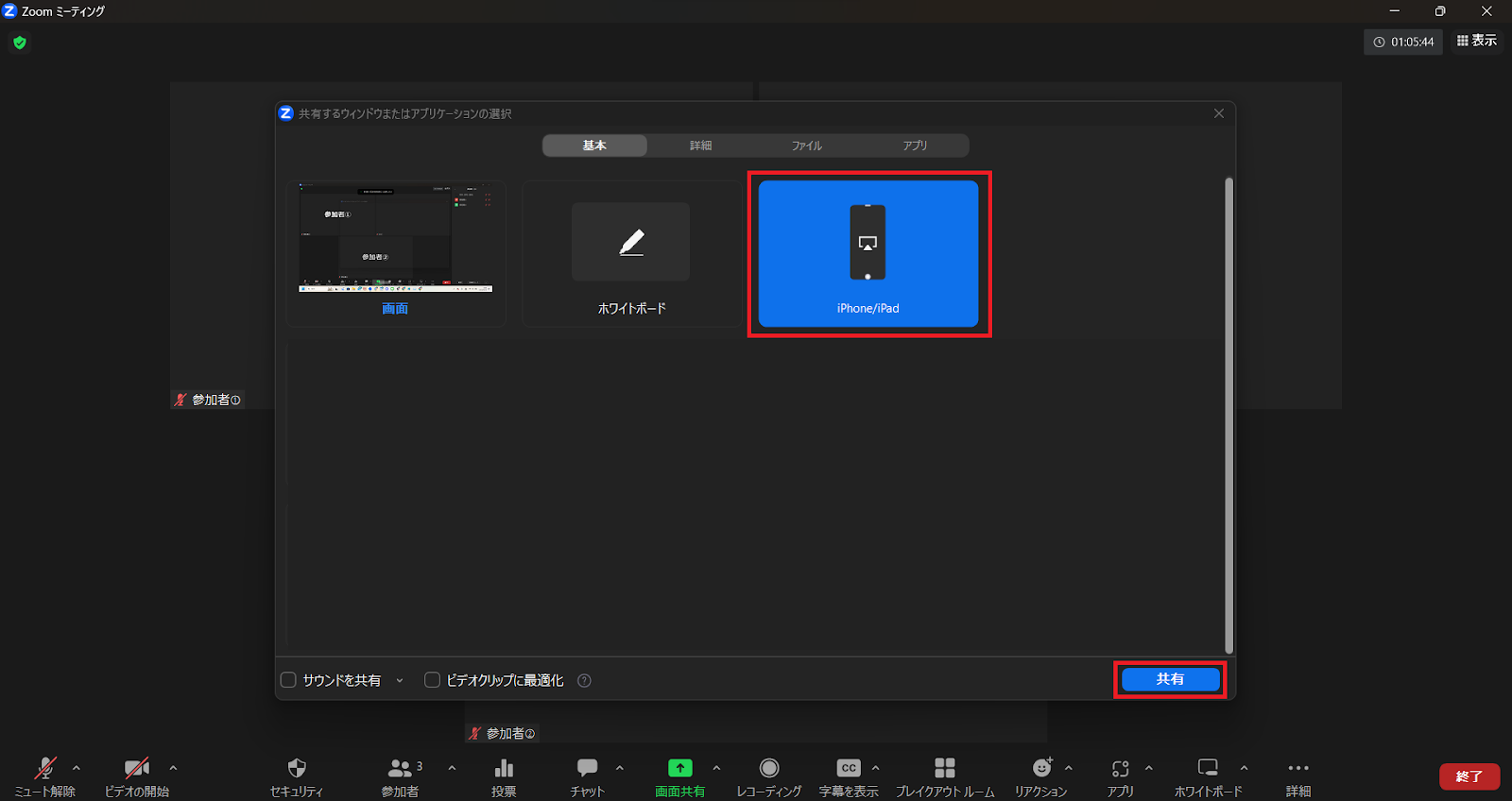スマートフォンを使いながら行うセミナーやイベントの場合、説明の際にiPhoneやiPadからの画面共有だとZoom画面が見づらくなりますよね。 そんなときに便利なのが「iPhone/iPadの共有」です。