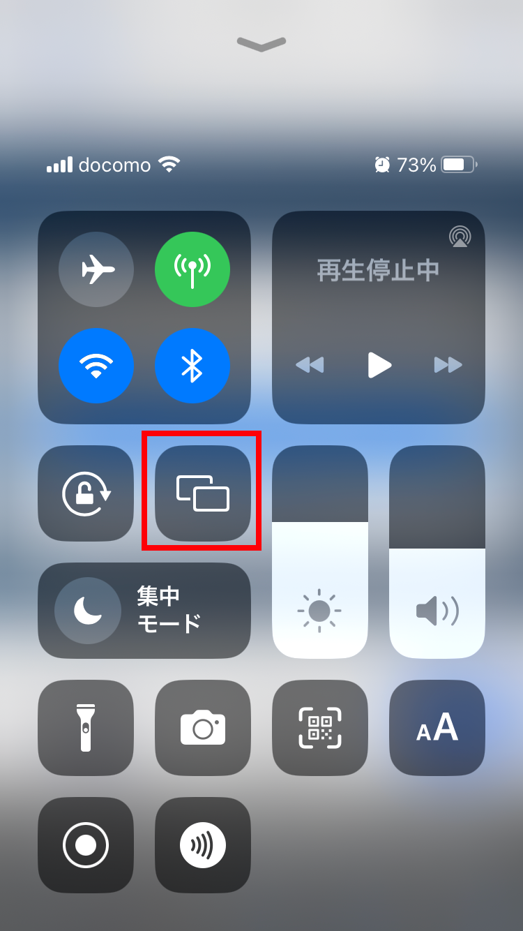 ⑤選択したiPhoneまたはiPadにて、「ミラーリング」ボタンをタップ