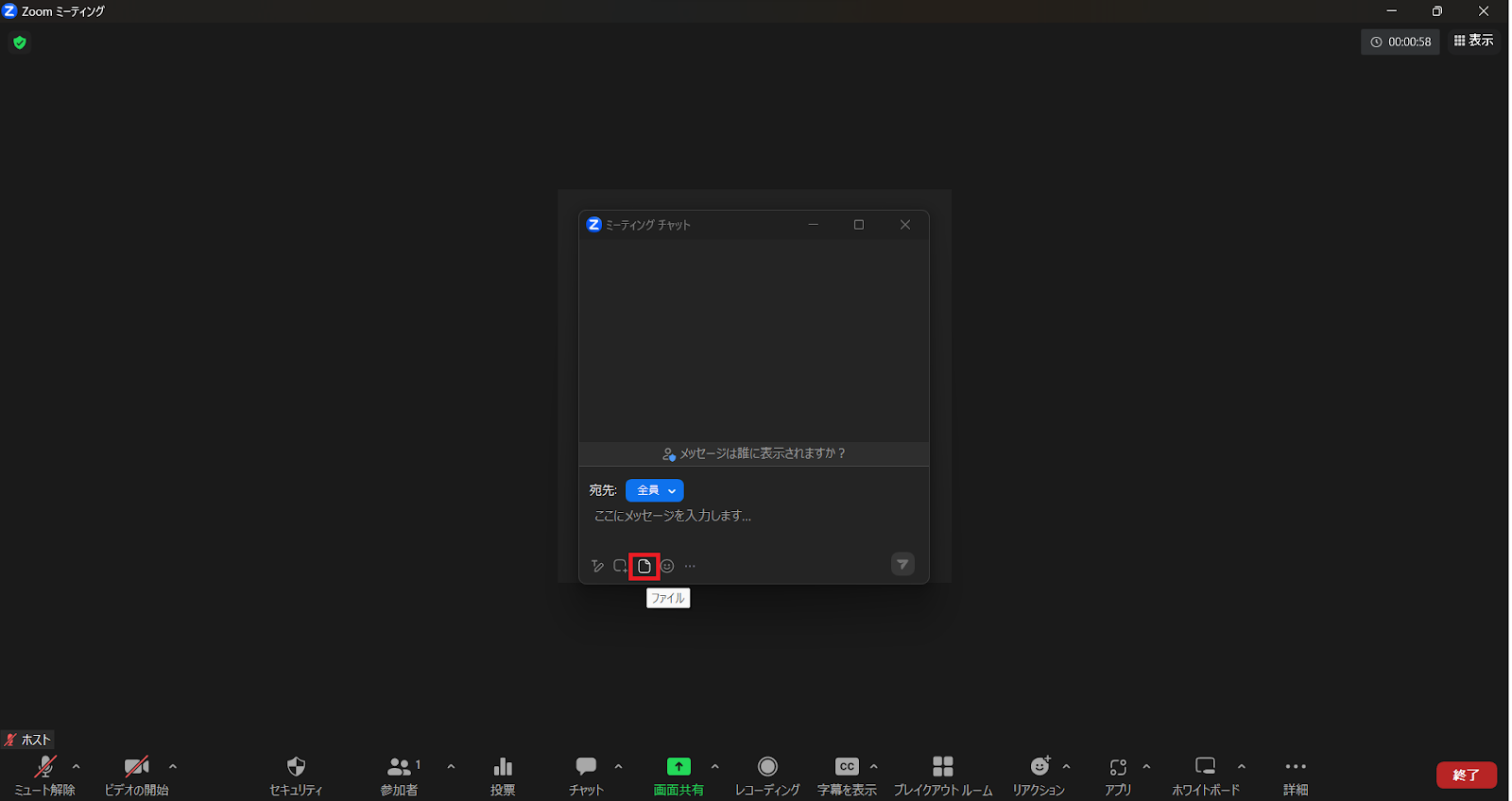 送信するときは、チャットを立ち上げて、左から3つのアイコンをクリック。