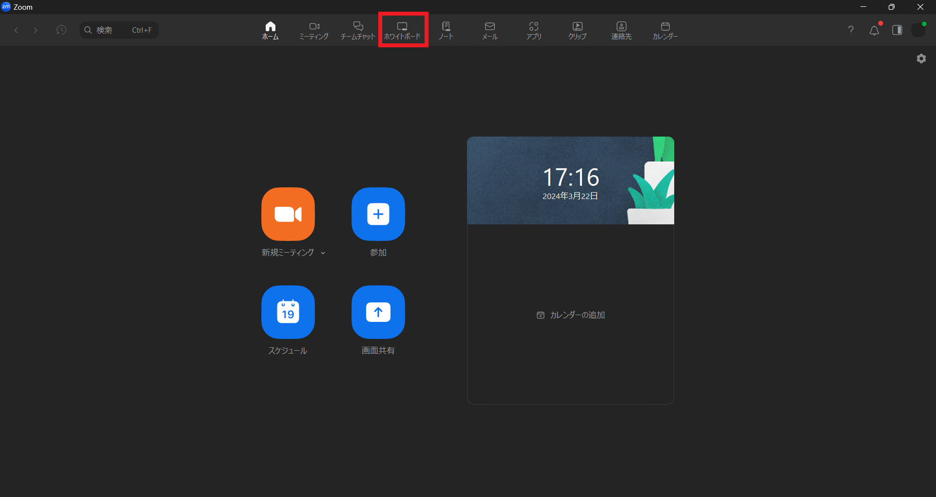 (Zoomミーティング中ではないときには、デスクトップクライアント<アプリ版>の上部に)