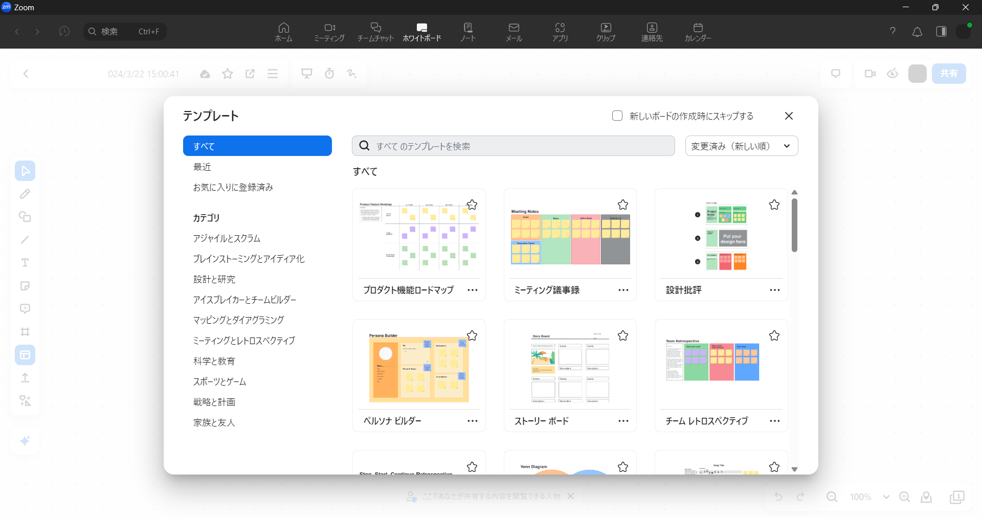 Zoomのホワイトボードには、様々なテンプレートが用意されています。