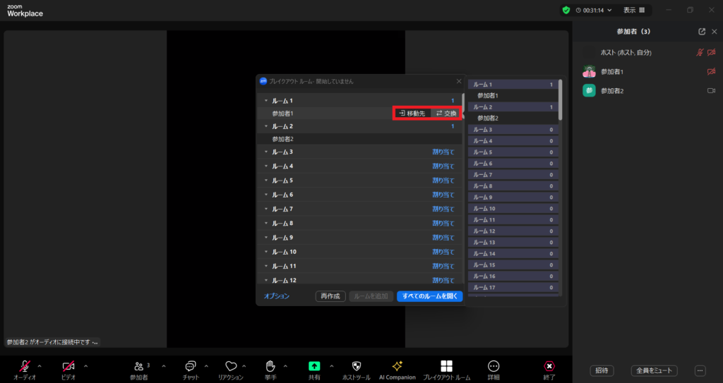 こうすることで、参加者をスムーズにブレイクアウトルームに移動させることができます。
