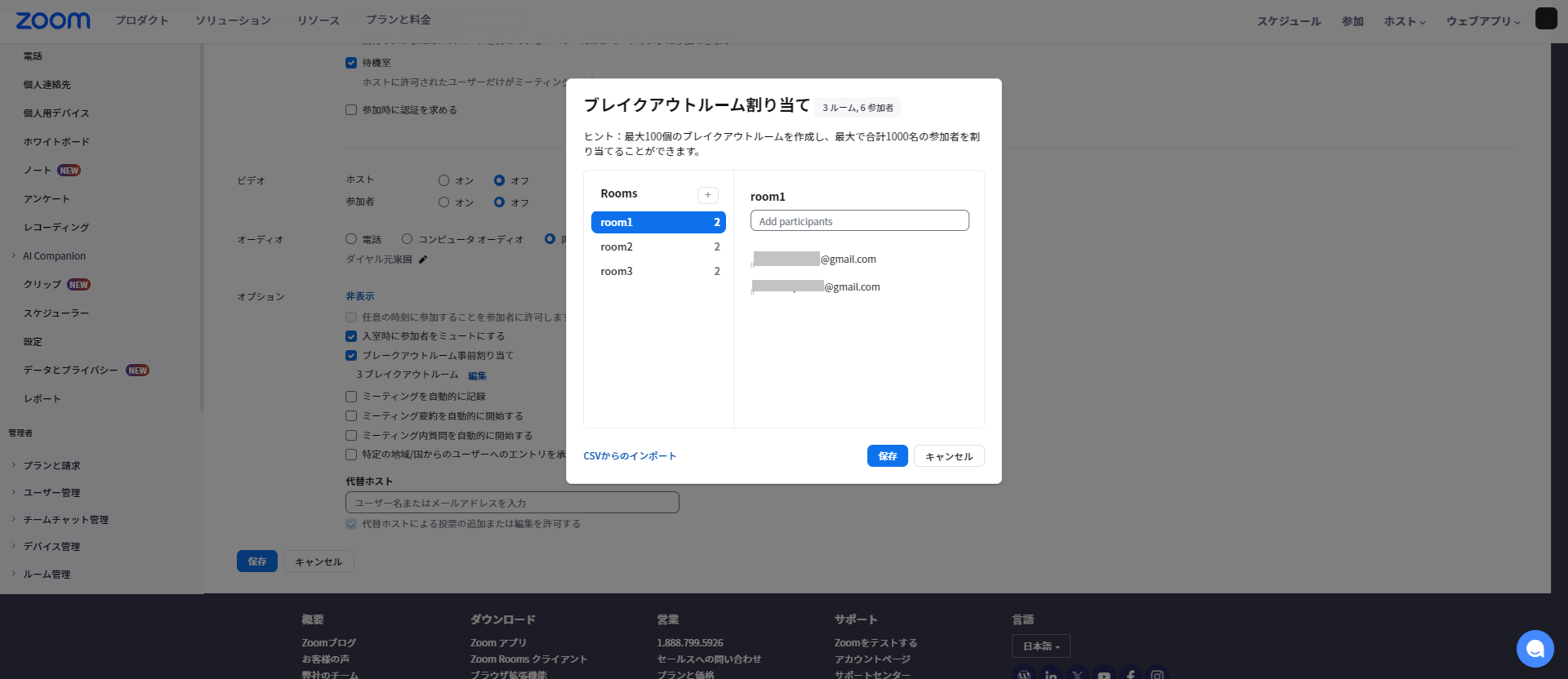ただし、事前割り当ては1つのミーティングにつき1セットしか保存できないので注意が必要です。また、事前に割り当てることができるのは、Zoom アカウントを持つ参加者のみです。Zoomアカウントを持っていない方のメールアドレスを設定しても割り当てられません。