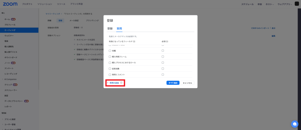事前登録機能は、Zoomの有料プラン(プロ、ビジネス、教育、企業)で利用可能です。無料プランでは事前登録機能が利用できません。
