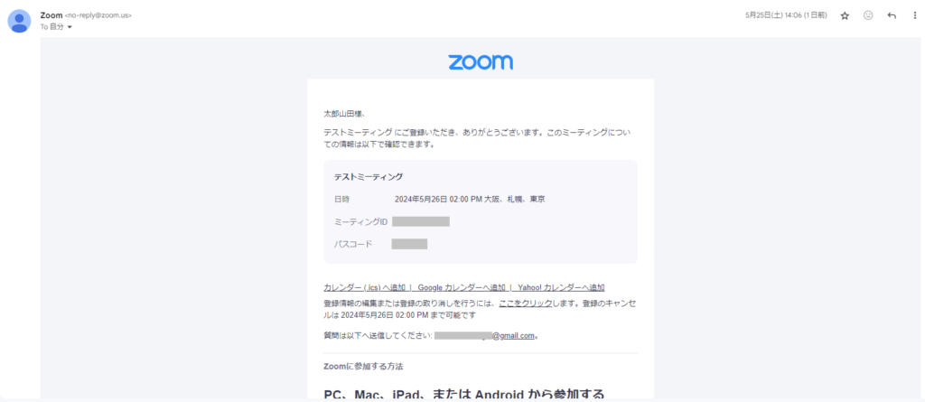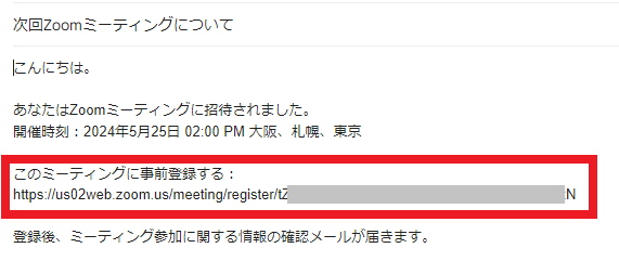 届いたメールから「このミーティングに事前登録する」をクリックし、