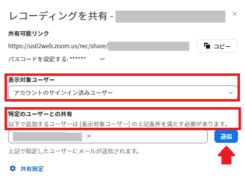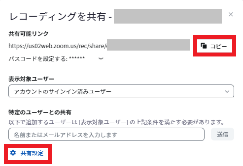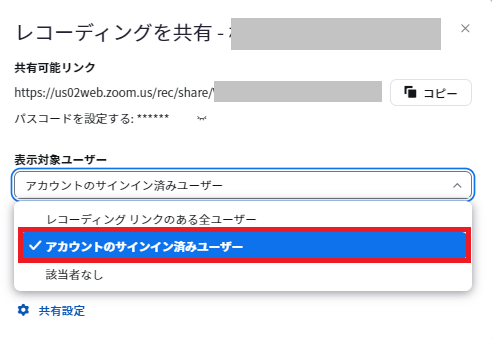 クラウドレコーディングを安全に共有するには、いくつかの重要な設定があります。