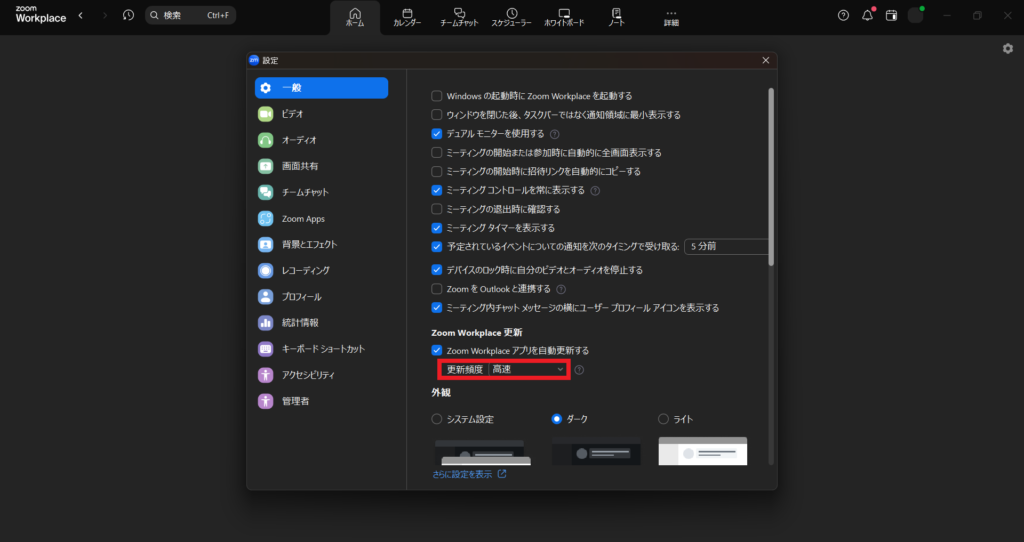 Zoomデスクトップアプリの更新速度設定を「高速」にしておくと、自動的に最新版に更新されるので、毎回手動で確認する必要はありません。しかし、重要なミーティングやセミナーを主催する場合は、事前にアップデートされているか確認するとよいでしょう。
