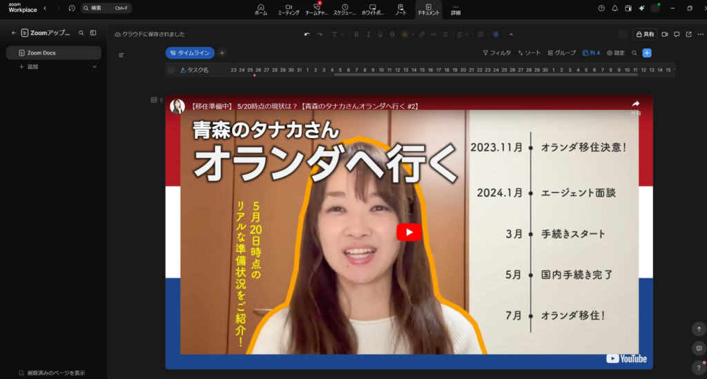 Zoom Docsは最大100名での同時編集に対応し、データ表やチェックリスト、画像やビデオの埋め込みなど、柔軟なコンテンツ作成が可能です。情報の表示方法も、カンバンボードやカレンダー、ギャラリーなど、目的に応じて選択できます。