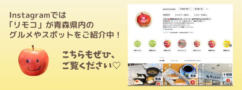 Instagramではマスコットのリモコが青森県内のスポット、イベントをご紹介しています。