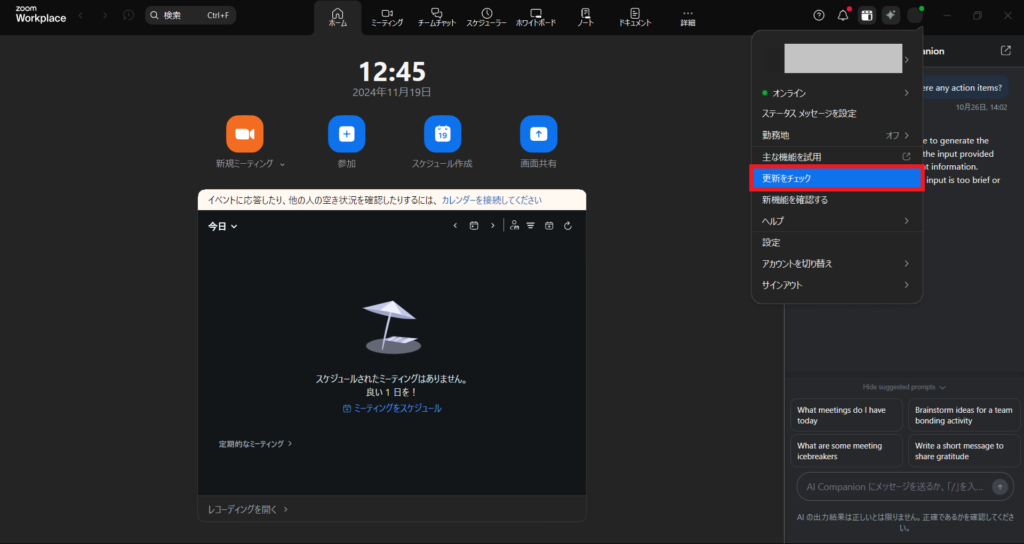 ※更新状況だけをチェックしたい場合はこの方法が有効です。更新チェック後にアップデートも行う場合は、次の「Zoomアップデートの手順と注意点」にてご確認いただけます。