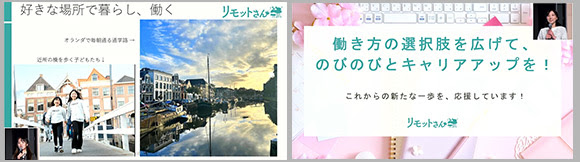 田中からは、子育てと仕事の両立に悩んだ経験からフルリモートワークへ移行し、現在はオランダから日本のチームと連携している経験と株式会社リモットさんについてを紹介しました。
