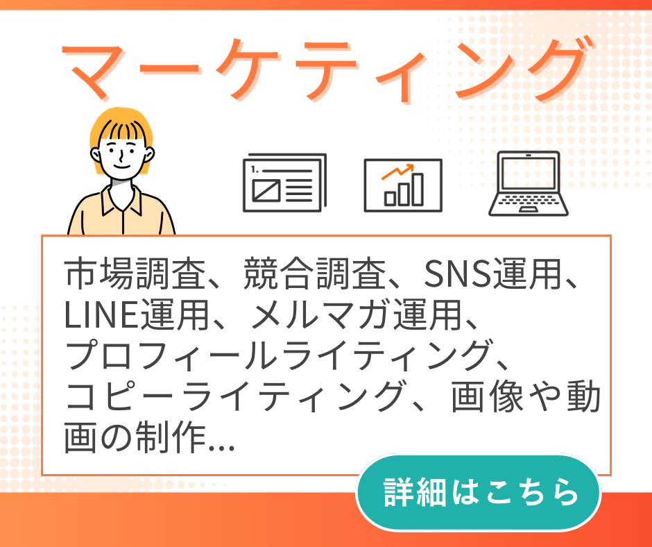 スケジュール管理、メール対応、データ入力など、日常的なバックオフィス業務を効率化できます。 - マーケティング・SNS運用
